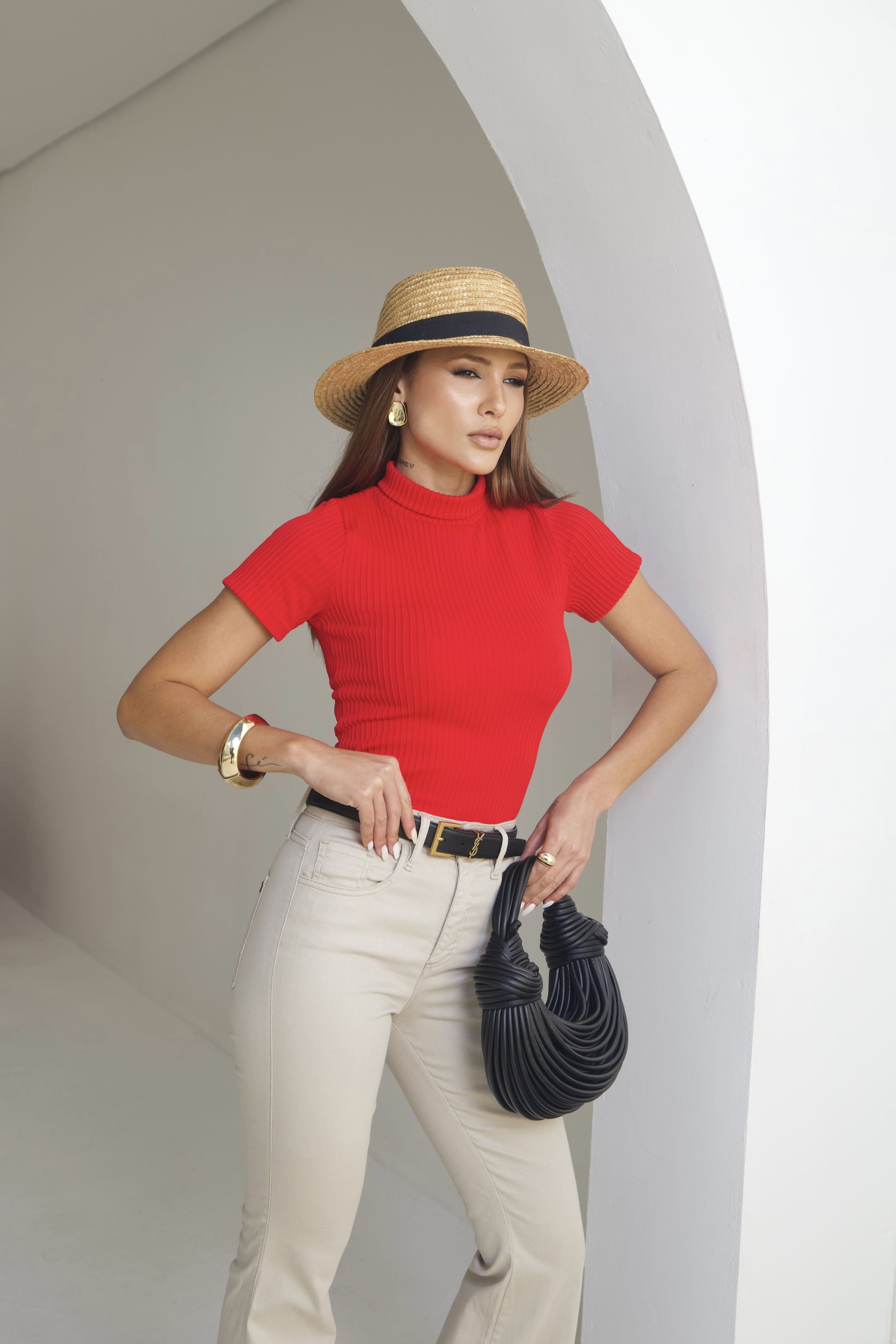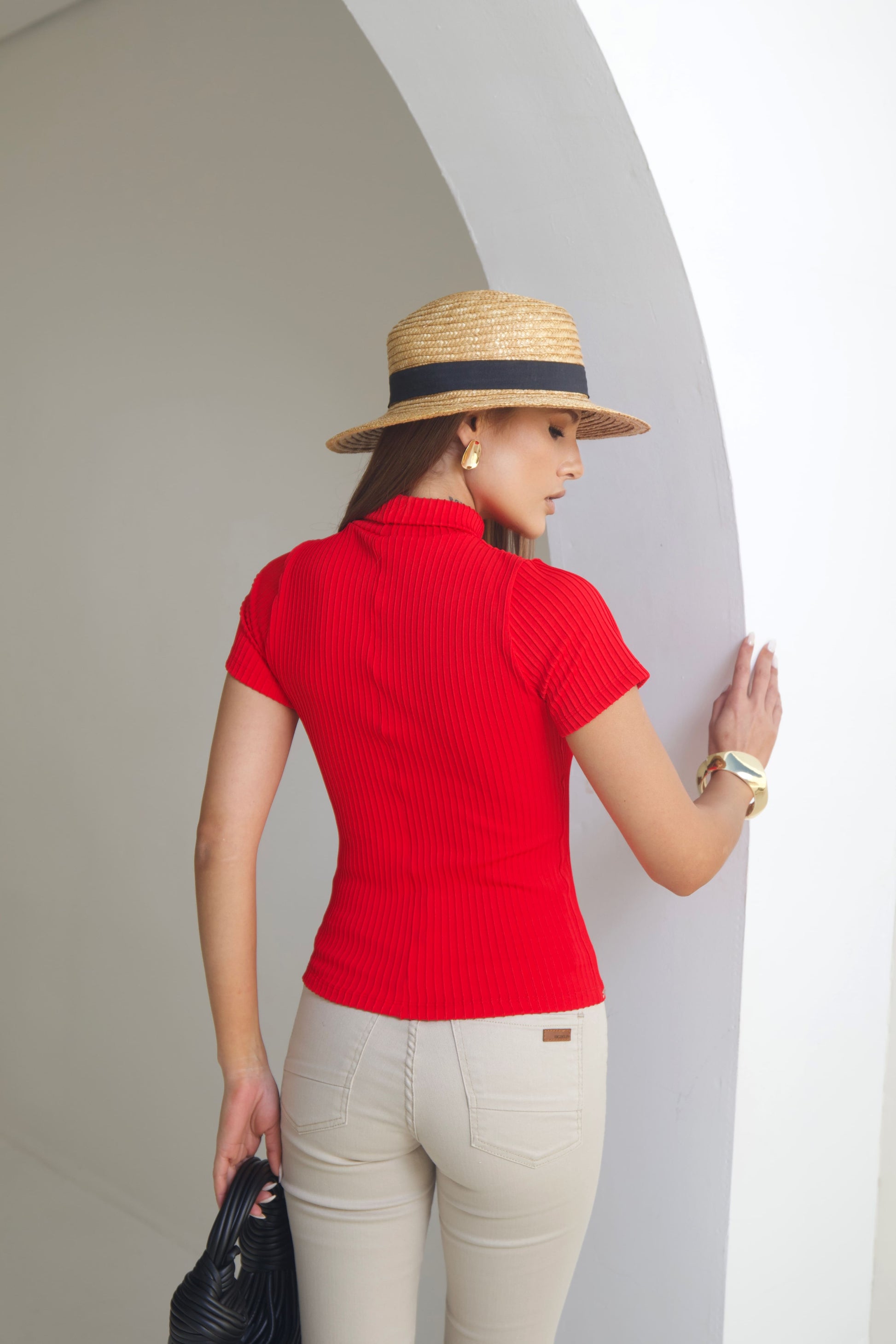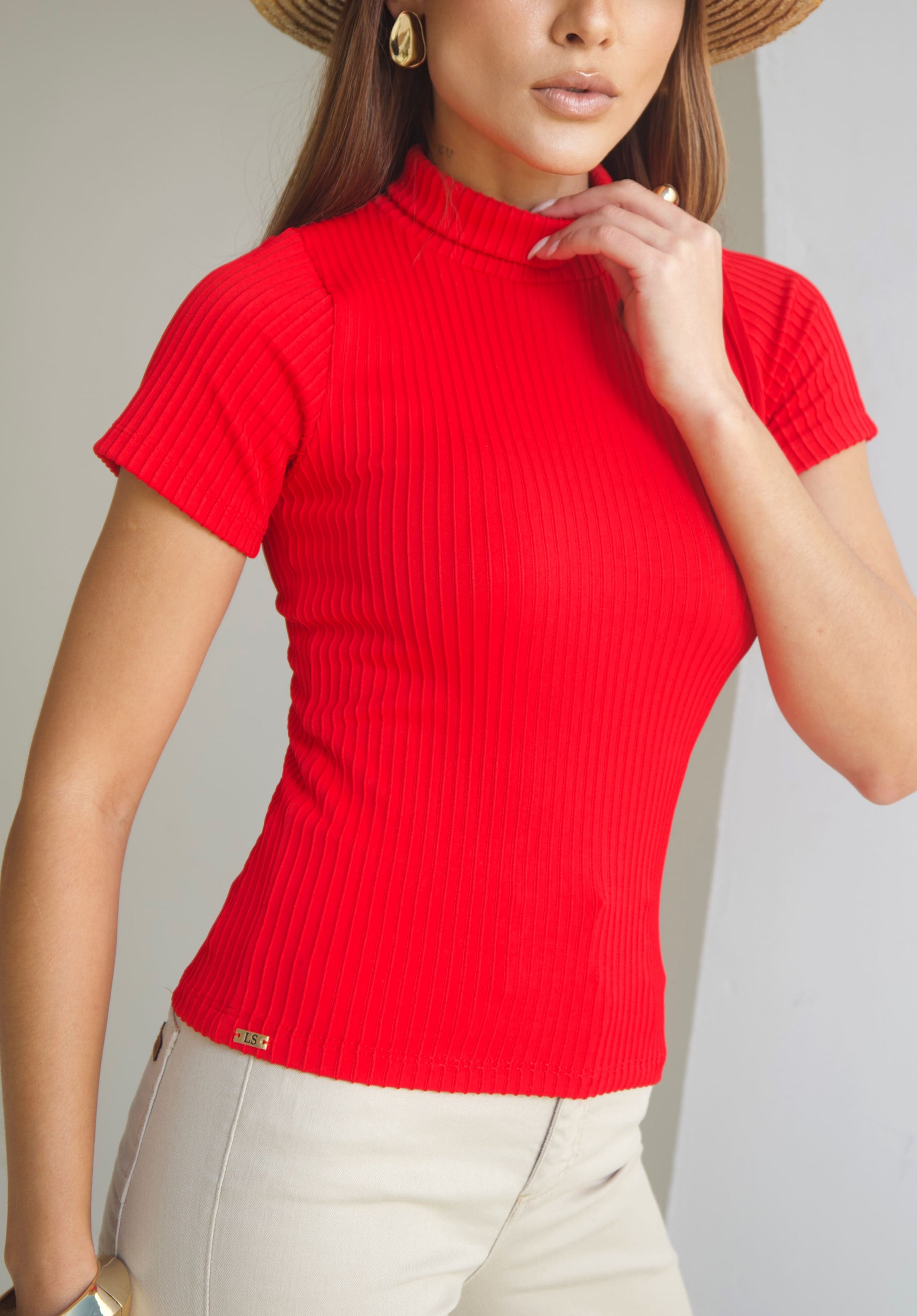 Com gola alta moderna e mangas curtas, é ideal para produções que vão do casual ao elegante, sempre com caimento impecável. O tecido tecnológico garante elasticidade equilibrada, zero transparência e toque macio, acompanhando cada movimento com naturalidade.