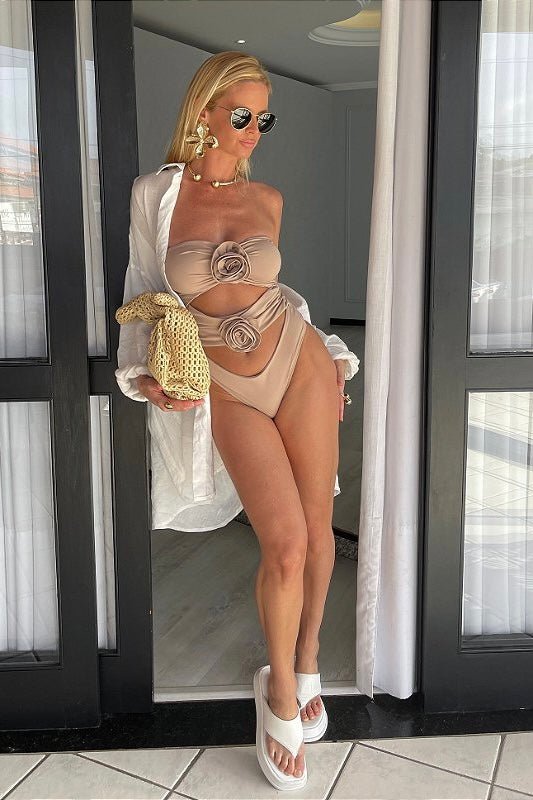 Este body em poliamida é o equilíbrio perfeito entre elegância e charme. Com detalhes florais torcidos no busto e na cintura, ele cria um visual delicado e sofisticado, ideal para quem deseja um look marcante e feminino. O tecido de alta qualidade oferece conforto e ajuste impecável, vestindo confortavelmente do 36 ao 42 graças à sua elasticidade. Versátil, é a peça-chave para compor produções elegantes e estilosas para dias de sol e eventos especiais.