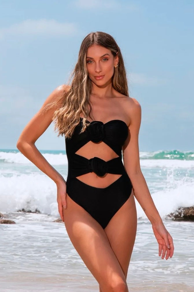 Este body em poliamida é o equilíbrio perfeito entre elegância e charme. Com detalhes florais torcidos no busto e na cintura, ele cria um visual delicado e sofisticado, ideal para quem deseja um look marcante e feminino. O tecido de alta qualidade oferece conforto e ajuste impecável, vestindo confortavelmente do 36 ao 42 graças à sua elasticidade. Versátil, é a peça-chave para compor produções elegantes e estilosas para dias de sol e eventos especiais.