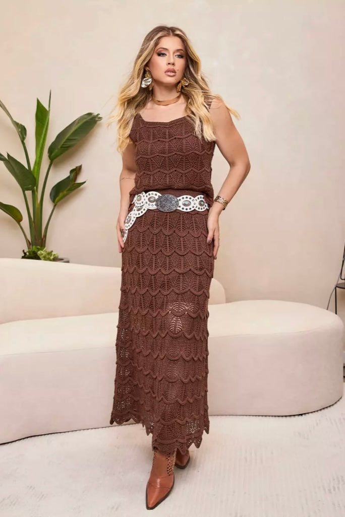 Conjunto Boho em Crochê Marrom