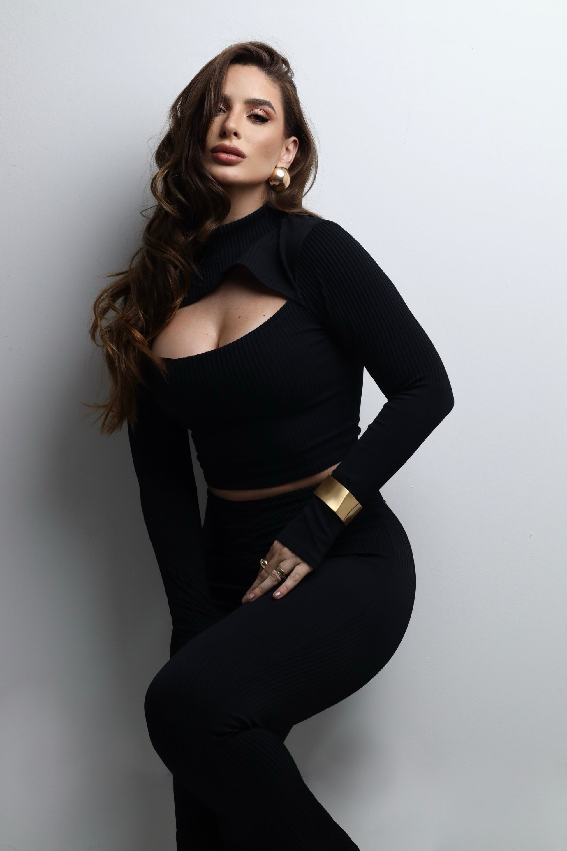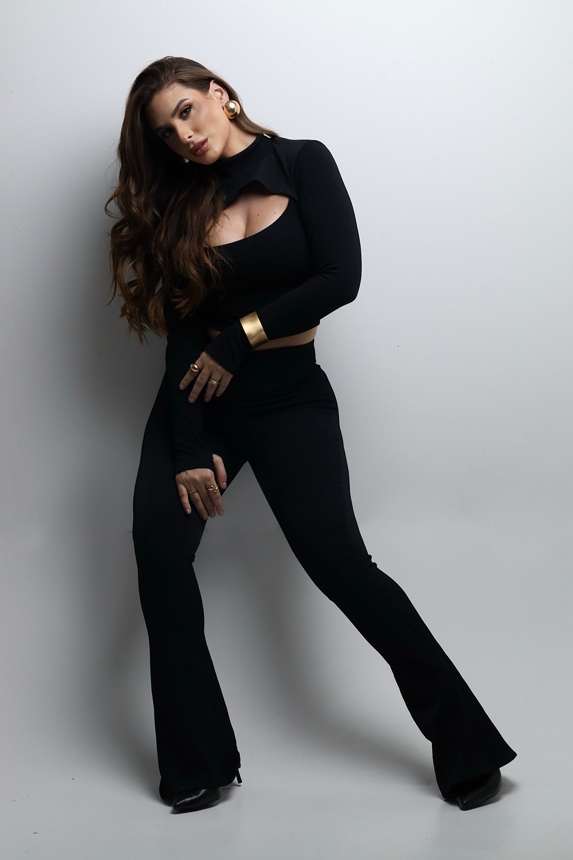 Conjunto Poliamida com Alta Compressão – Calça Flare e Cropped Preto
