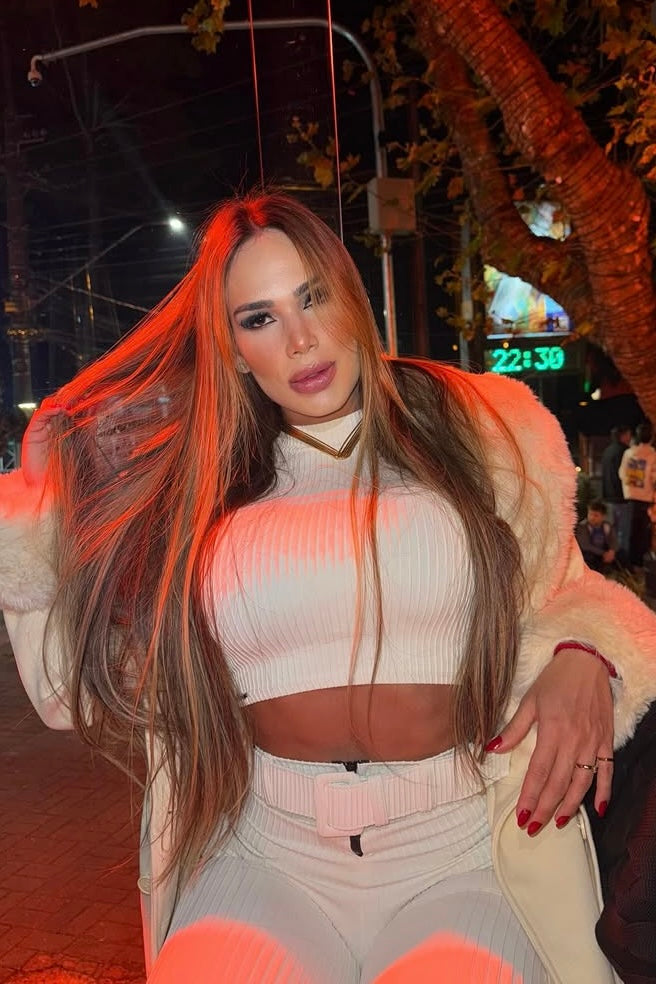 Busto: 96 cm | Cintura: 69 cm | Quadril: 95 cm | Altura: 1,72 m (Veste tamanho P)