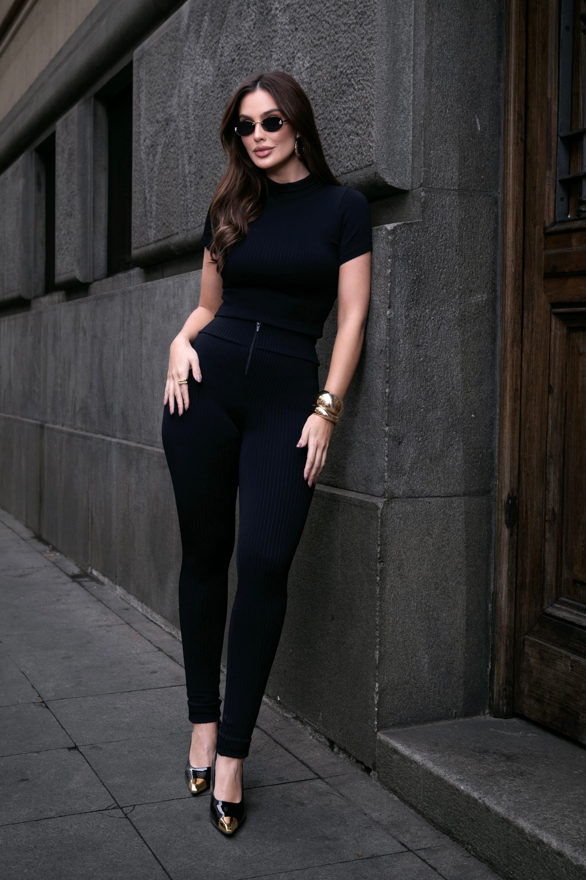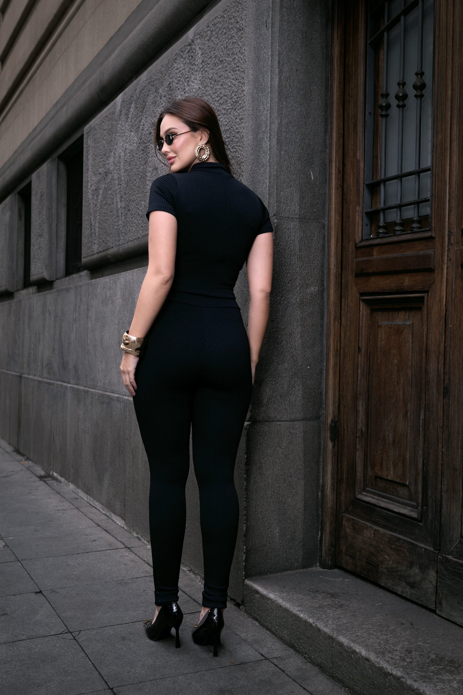 Conjunto confeccionado em poliamida de alta compressão, composto por calça ajustada com zíper frontal , garantindo um ajuste perfeito e moderno. O cropped regata de gola alta complementa o visual, trazendo contemporaneidade ao look. Ideal para quem busca um estilo marcante para diversas ocasiões, unindo conforto e um design que valoriza a silhueta.