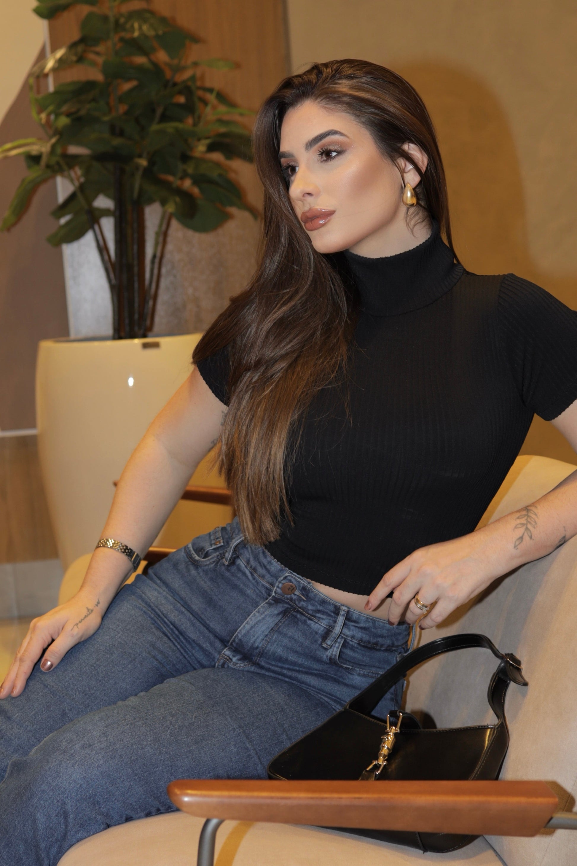 Com gola alta moderna e mangas curtas, é ideal para produções que vão do casual ao elegante, sempre com caimento impecável. O tecido tecnológico garante elasticidade equilibrada, zero transparência e toque macio, acompanhando cada movimento com naturalidade.