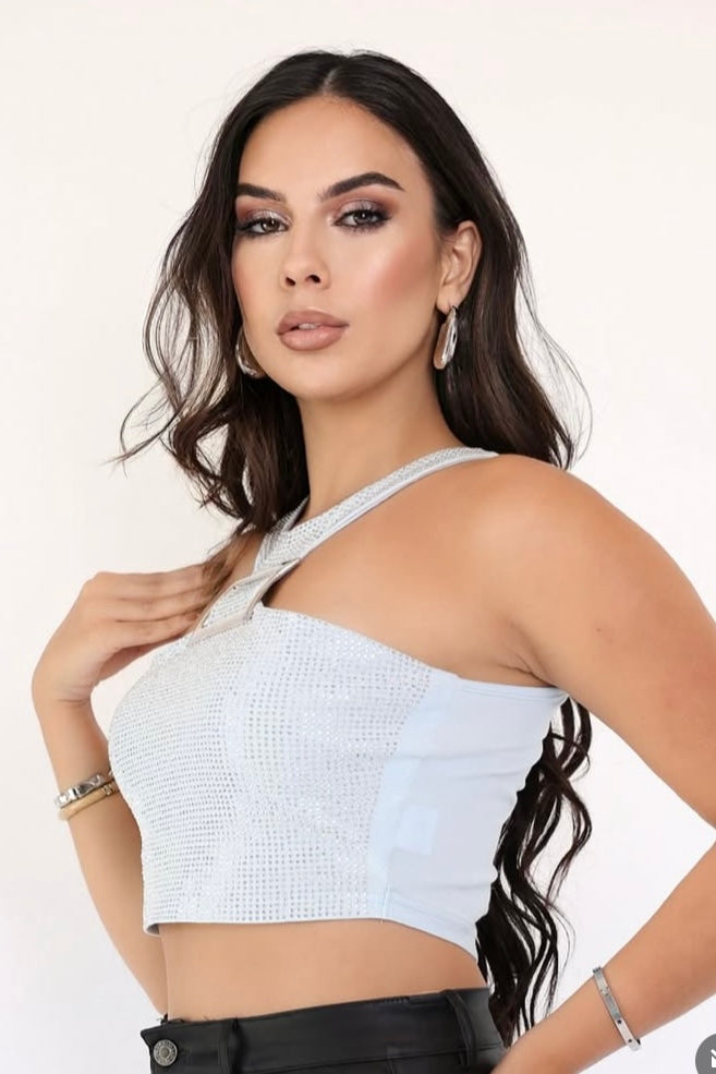 O Cropped Strass é a peça perfeita para quem busca um toque de brilho e glamour no look. Com detalhes em strass e um design que valoriza a silhueta, ele é confeccionado em **100% algodão**, garantindo conforto e sofisticação. As alças delicadas e o caimento ajustado tornam essa peça ideal para ocasiões especiais ou para um visual moderno e marcante. Disponível nos tamanhos P, M e G.