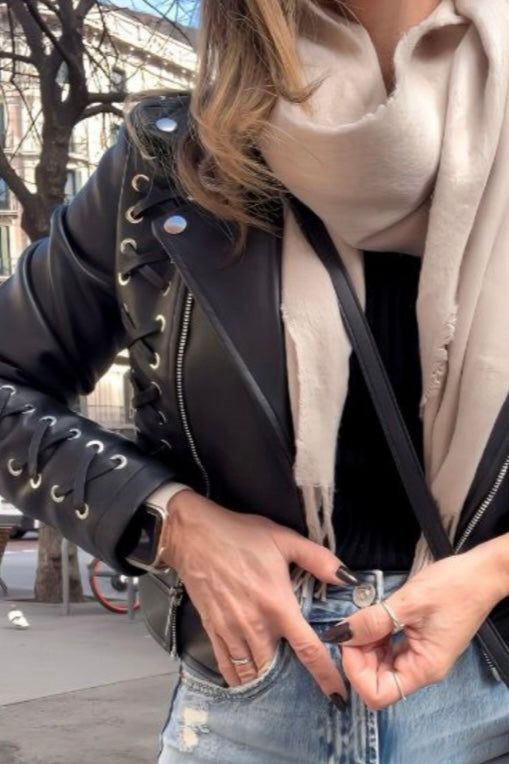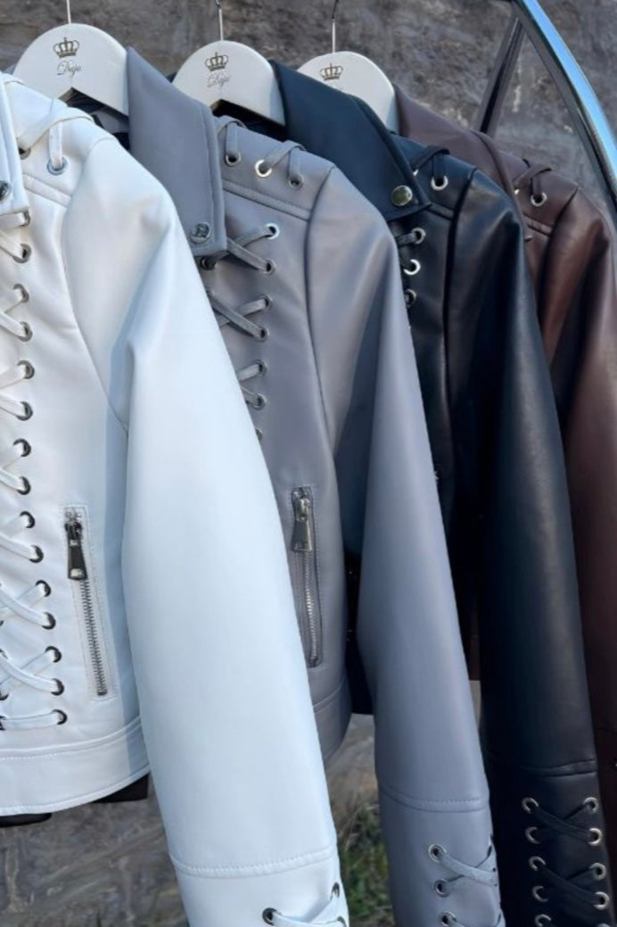Design ousado com amarrações laterais que fazem toda a diferença. A Jaqueta Couro Lace-Up é feita em material sintético premium, tem modelagem estruturada e um caimento impecável que valoriza a silhueta. Perfeita para elevar o look com atitude e estilo.